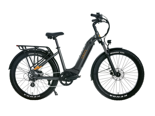The Defender is purpose built for RV owners! It features an electronic anti-theft device with a loud alarm, is fully rust-proof and highly water resistant, and it's a very versatile e-bike that will perform well in just about any riding situation. Tackle off-road trails with the large (but still nimble) tires and suspension fork. Run errands in town with a rear rack, fenders, and integrated lighting. With an upgraded pedaling drivetrain and responsive torque sensor, the Defender is a ton of fun to ride and it's also adjustable to fit a fairly wide range of rider sizes.